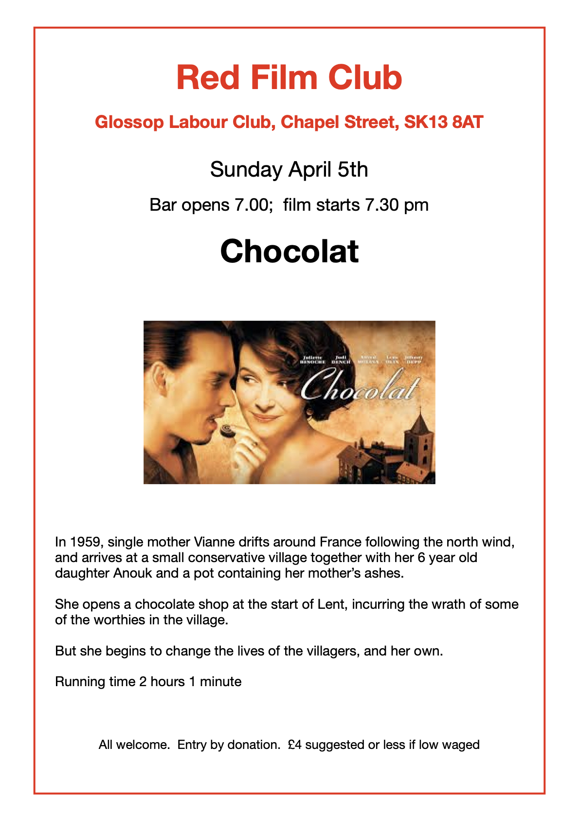 The folk train leaves Manchester Piccadilly at 18.33 to Glossop. The band play at Glossop Labour Club and we return on the 21.22 from Glossop and arrive back at Piccadily at 21.54.